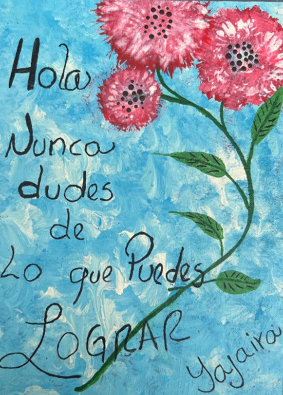 Through vibrant flowers and encouraging words, it reflects the importance of helping children feel confident and supported as they imagine their futures. Sharing this piece helps uplift and empower young voices through art.